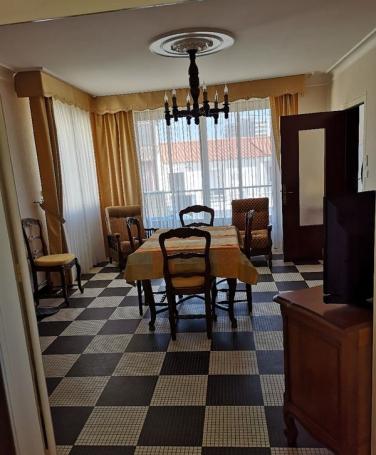 - 1 salle à manger avec 1 fenêtre et une grande baie VITRÉE donnant sur un balcon carrelé,