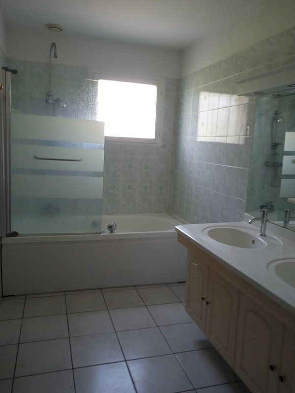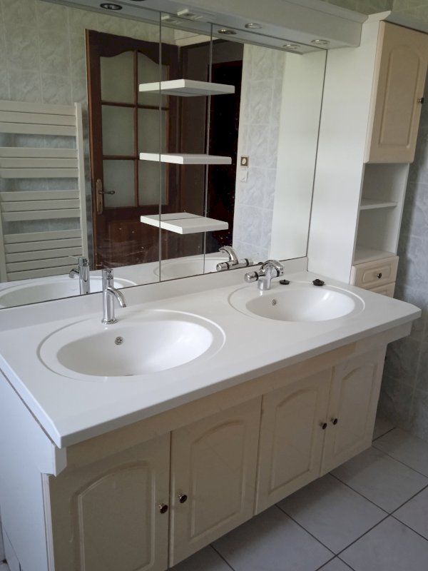 R de Ch. : salon séjour cuisine 52 m², 2 ch. de 12.5 m², bureau 10.5 m², arrière cuisine 14 m², salle de bain 7 m² balnéo + double vasque, WC suspendu indépendant, garage 30 m², tout à l'égout.