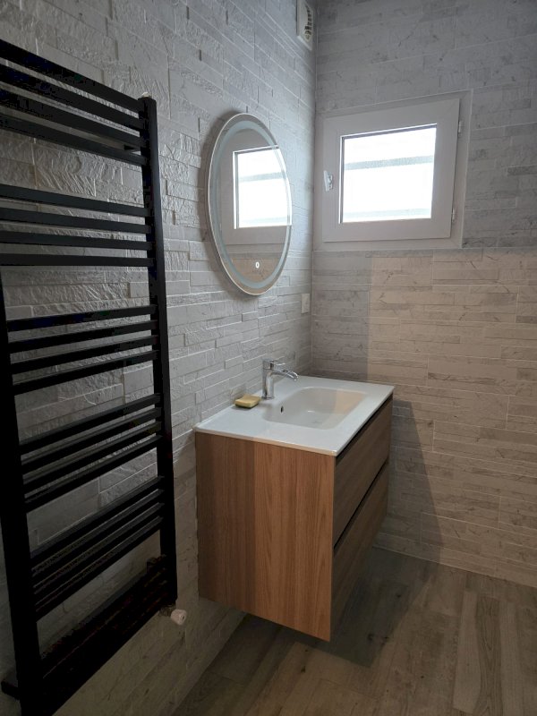 - Une salle de bain avec une douche à l'italienne + un meuble vasque.