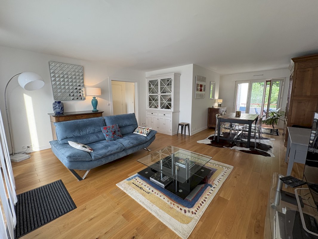 Appartement 88 m2 , F4 transformé en grd F3 , 3 e et dernier étage dans impasse , très calme , entre hippodrome et vallée du Cens , traversant et très lumineux ,Expo Sud , salon séjour 36 m2 , parquet , 2 grdes Chbs avec dressing , 2 terrasses 1 avec vue exceptionnelle, 1 cuisine séparée entièrement équipée , 1 SDB avec 2 vasques et douche , 1 arrière cuisine très pratique , 1 cave , 1 parking en SS , chauffage individuel , gardien sur copro , refait à neuf , proche Tram T2 Petit Port , Bus C2 , C26 , C 20 ... proche Facs , Audencia , Centrale ... idéal petite famille ou inverseur . La nature en ville , jogging au pied de l'immeuble. Libre cet été , possibilité vente meublée . Agence s'abstenir Merci.