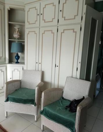 - salon exposé sud-ouest avec balcon 9 m² (vue mer du balcon) avec meubles intégrés sur mesure comprenant 1 lit armoire rabattable de 140 cm,